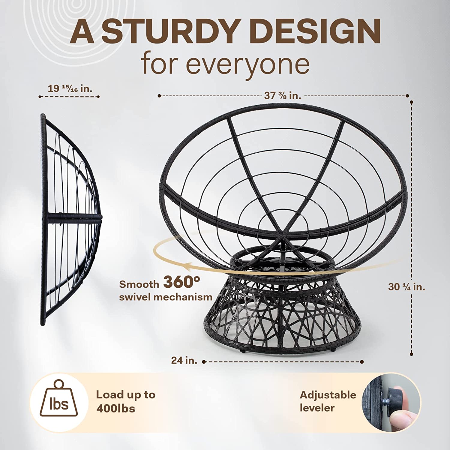 Vật liệu: Khung sắt sơn tĩnh điện, dây nhựa giả mây, vải polyester chống thấm nước