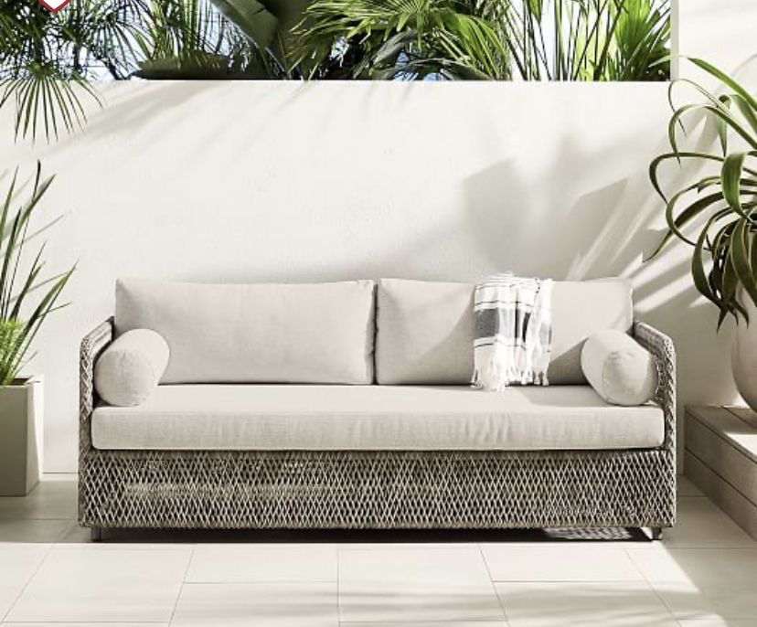 • Vật liệu: Khung sắt sơn tĩnh điện, dây nhựa giả mây, vải polyester trượt nước